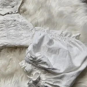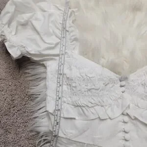 SABO Shirred Milkmaid Crop Top Womens Size XS Romantic Feminine Cottage Coquette