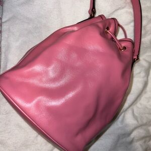 Stylish and versatile Prada pink leather bucket bag perfect for any occasion. Features a sleek design with ample space for essentials. Elevate your style with this chic accessory. Wore maybe 3 times. Really cute and love the shade of pink, I just have too many pink bags at this point. Comes with crossbody strap, dust bag, box if requested.