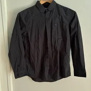 Sleek and versatile button-down. Ideal for casual outings. Features a classic collar and chest pocket. Perfect new condition just wrinkled from storage size medium RVCA