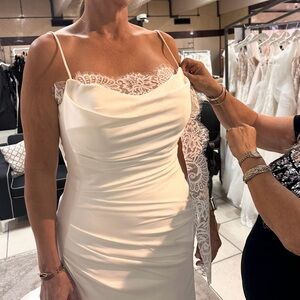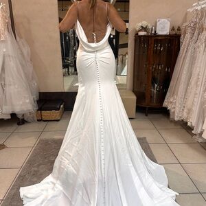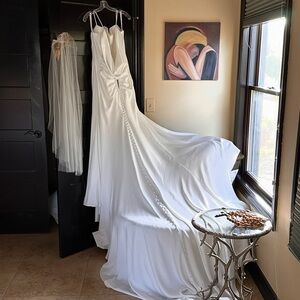 Stunning Sophia Tolli wedding dress. Features a sleek silhouette and elegant train. Perfect for a timeless bridal look.