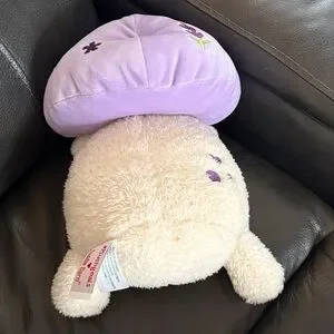 Delight your child with this plush cream and purple stuffed animal. Soft and huggable, it's perfect for endless cuddles and imaginative play.