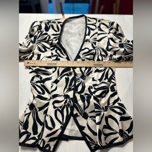 • Color: White and Black floral jacket with solid black skirt