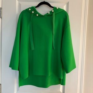 Beautifully made with French scuba knit fabric.Pearls around the hood. Generous fit.