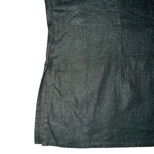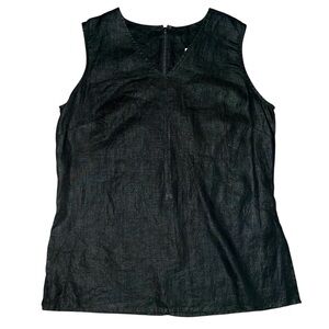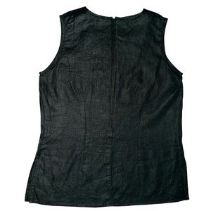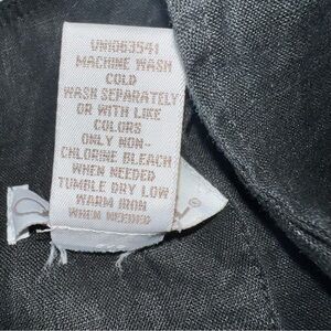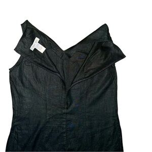 100% linen v neck black top with zipper in the back that glides smoothly side slits making a very feminine silhouette size 8 pre owned great condition no signs of wear see photos for measurements