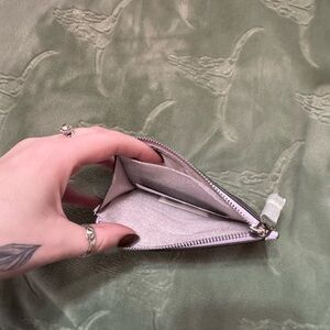 Stylish lavender card holder featuring a spade logo. Compact and elegant design.
