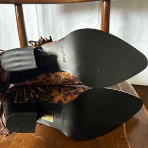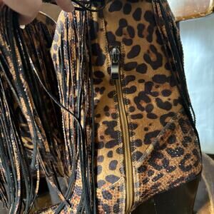 Oupiano Animal Print Rhinestone Fringe Pointy Toe Boots Size 9 New