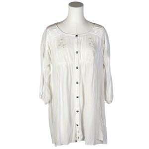 Tasha Polizzi White Embroidered Pintuck Lace Boho Tunic Blouse S