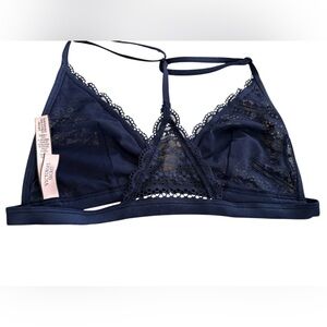 VS bralette size S in dark blue lace. NWOT. Adjustable t-straps in back. Front closure.