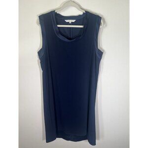 TRINA TURK navy blue scoopneck sleeveless crepe shift flowy dress L minimalist