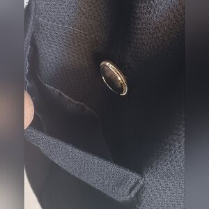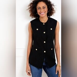 Sleek black vest with elegant gold buttons. Perfect for layering or by itself over jeans or something more elevated. All pockets are functional.