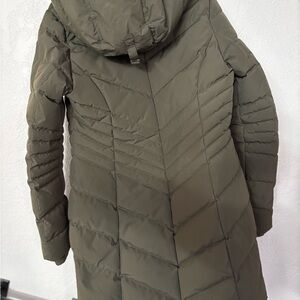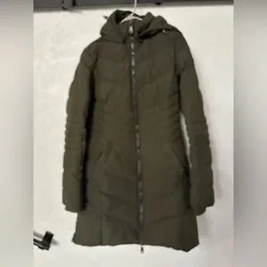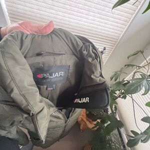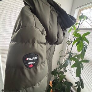Excellent Condition-Stylish olive puffer coat by Pajar. Perfect for winter warmth.
