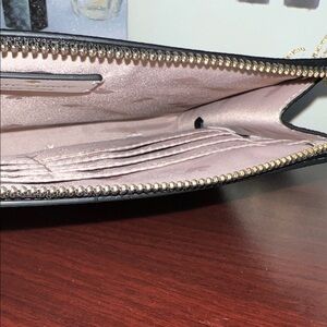 Stylish wristlet by Kate Spade with a houndstooth dachshund design. Features a chic black and white color scheme.