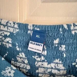 Flutter-Sleeve Crepe Midi Dress, blue with white floral, size XL NWT