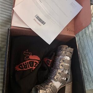 Freebird bronze Croc-Embossed Heeled Boots