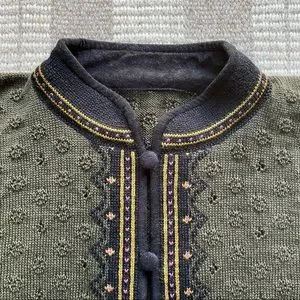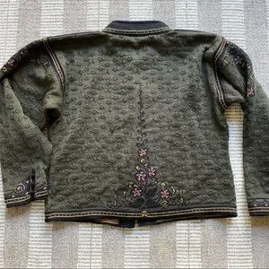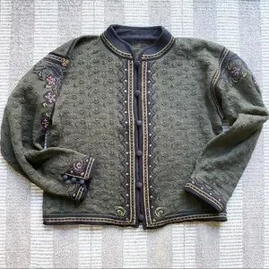 DALE OF NORWAY Olive and Violet Embroidered Cardigan,size Large