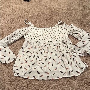 See through Shoulder top, with sleeves and a fall leaf design. Flowy top perfect for any casual wear. Torrid size 2X.