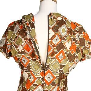 Vintage Mod Keyhole Dress Brown Orange Geometric Metal Zip B36 W34 Sz M -Hey Viv
