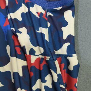 Staining under arms and a couple of cosmetic flaws on back of shirt as shown in photos