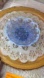 Wide footed sugar cane bowl by Imperial Glass Company. Made in the 1930’s in a Katy blue and opalescent lace edge rim. This piece is in great vintage condition and is in the cane and button pattern.