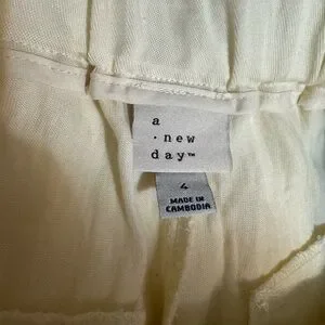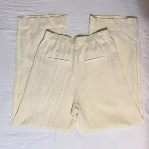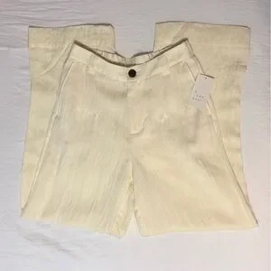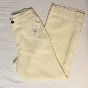 New with tags! High-waisted flare cream colored trousers. Features button and zipper with elastic back for fitting.