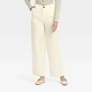 Women’s Cream High-Waisted Wide Leg Trousers
