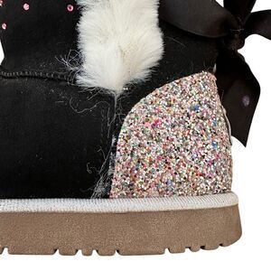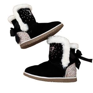 Juicy Couture ~ Girls Fur lined Black Suede booties with bling/sparkle ~ size 4