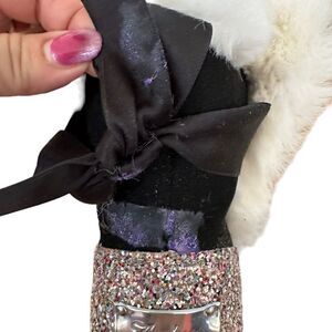 Please see all photos…there is purple residue under the bow…not too obvious when boots are worn.
