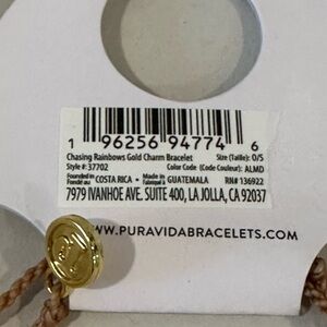 Charming Puravida Chasing Rainbows bracelet with a gold rainbow charm. Adds joy to any look. NWT
