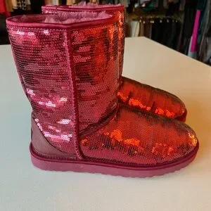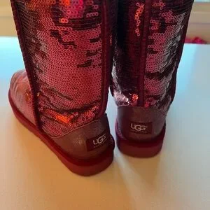 UGG Women’s Size 11 Sparkling Red Sequin Boots with Fuzzy Lining