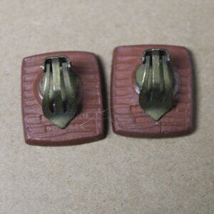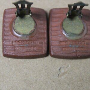 Vintage signed Brondsted of Danmark/Denmark modernist ceramic brooch and clip earrings set. The set is in very good condition for its age. The brooch measures about 1 3/4" by 1 1/2". the earrings measure about 3/4" by 1/2".