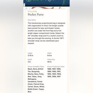 From the vintage Coach database: This handsomely proportioned bag is designed with organization in mind. Full-length outside back pocket for keys and theater tickets. another one under the front flap and a full-length zipper compartment inside. Detach the 44" shoulder strap and it's a stylish clutch to take you through the evening.