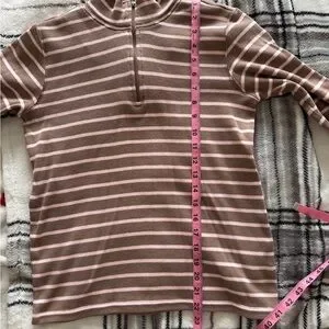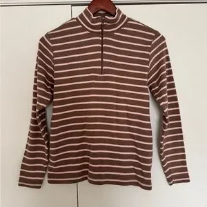 L.L. Bean 100% Cotton Striped Quarter-Zip Pullover Sweatshirt Brown Pink Small