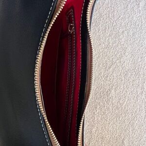 Classic meets chic with this Dooney & Bourke Pebble Grain Riley Hobo Bag in rich black leather with contrast trim. Crafted from pebbled leather and detailed with gold hardware, this bag offers timeless sophistication and everyday practicality.