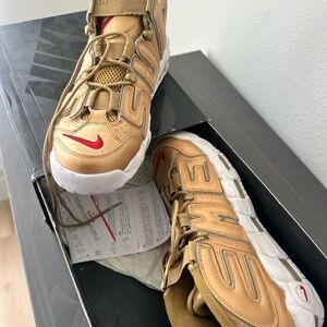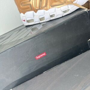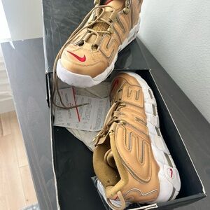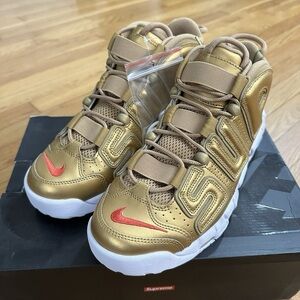 Nike X Supreme Suptempo Gold and White Sneakers with Red Accents size 10