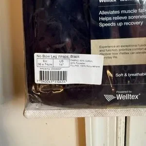 NWT - The Back on Track Therapeutic No Bow Leg Wraps are a cotton/polyester blend material that utilizes our Welltex® technology to reflect your horse’s own body energy to create a soothing far infrared thermal effect. When you use our No Bow Leg Wraps, the unique material may help to decrease swelling and help keep your horse’s legs cool and tight. Horse owners use the Back on Track No Bow Leg Wraps for injury prevention or recovery. They should be used with standing bandages after a strenuous ride and left on overnight after the initial introductory period. These wraps are also great to use when shipping your horse. 14”