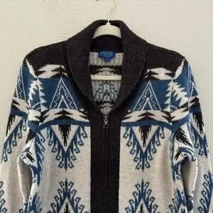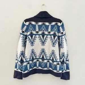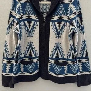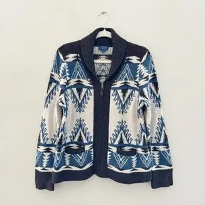 Pendleton Cardigan Sweater Wool Alpaca Knit Aztec Southwestern Country Blue L