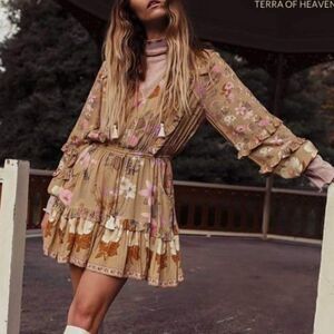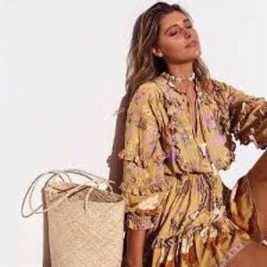 This dress is so cute with long sleeves, v-neck, ruffles and an adjustable waist with a drawstring with beautiful tassel detail for a better fit. It comes with a lovely floral print of bright colors. If you love-free people, Johnny Was, Spell & the Gypsy, Pendleton, Anthropolgy