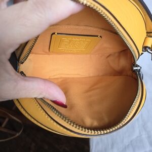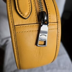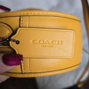 Limited Edition Classic Yellow/Golden Yellow cross grain leather bag made by Coach; features black antique nickel hardware, special edition Coach hang tag and inner slot pocket