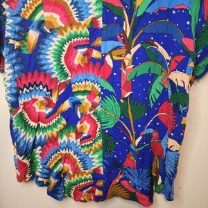 Farm Rio Button Shirt Forrest Parrot Tropical Boho Multi Color Womens Large