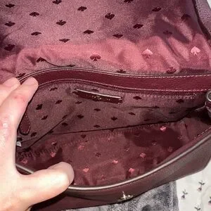 Chic Kate Spade shoulder bag in plum leather. Features a sleek design with a front zipper pocket.