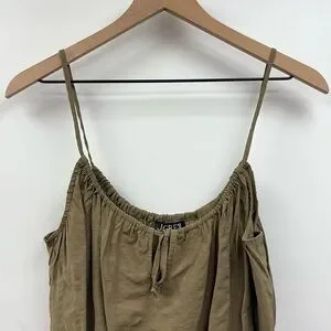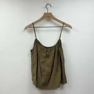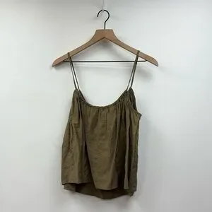 J. Crew Crinkle Keyhole Cami Spaghetti Strap Tank Top Olive Green Large