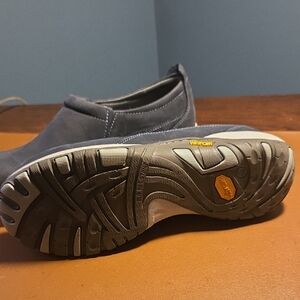 Stylish gray mules with slip-on comfort. Perfect for everyday wear. worn once. excellent like new condition.