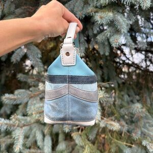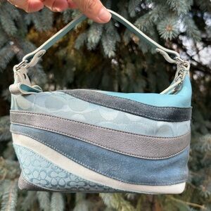 *RARE* Coach Denim Wave Patchwork Demi Bag Suede Light Blue Handbag Y2K