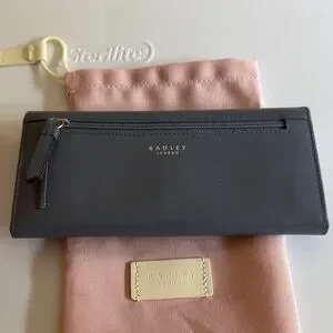 Elegant Radley London wallet in medium blue. Features signature dog detail. Comes with a pink dust bag.