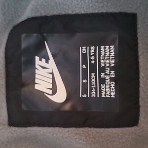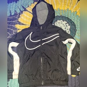 Gently used Nike Windbreaker lined with Fleece throughout the inside and the arms. Very warm. No Stains, No Rips, Zipper in great condition. Stylish and comfortable, this Nike kids jacket features a sleek black and white design. Perfect for keeping your child warm and trendy.