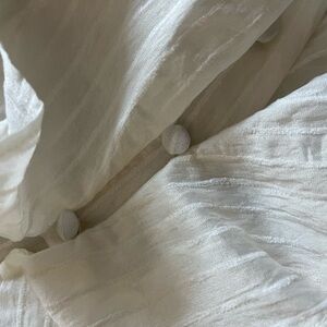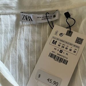 NWT! Zara Chic white ruffle shirt with textured design. Ideal for versatile styling. Great with jeans or for the office too! Size Medium
