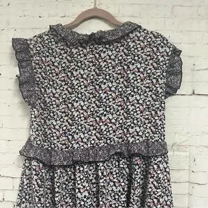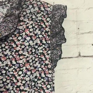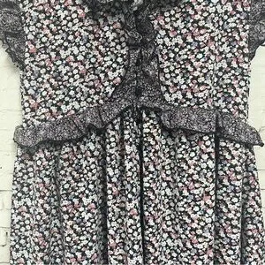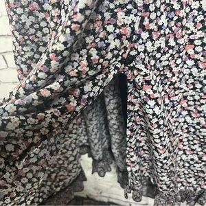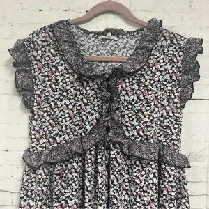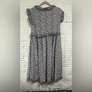 Easel Tiered Midi Dress Purple Floral Ruffle Sleeve Boho Cottage Core Large