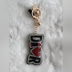 Designer Inspired Black and Red Heart Keychain Bag Charm