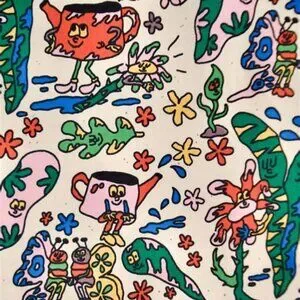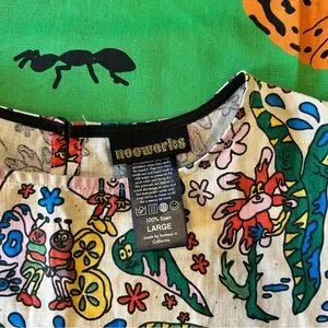 Crew neckline and a keyhole opening in the back with button closure. Relaxed, straight fit throughout with ruffled short sleeves. Amazing novelty print by Aga Gieko but doesn't get enough love so I hope it finds a better home!