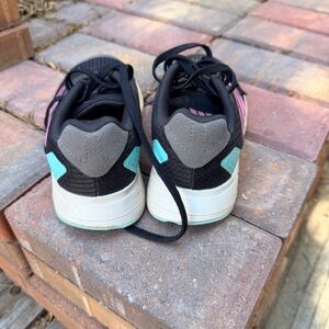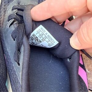 Stylish adidas kids sneakers. Black with pink stripes. Comfortable and durable design. Great condition. Needs a good scrub